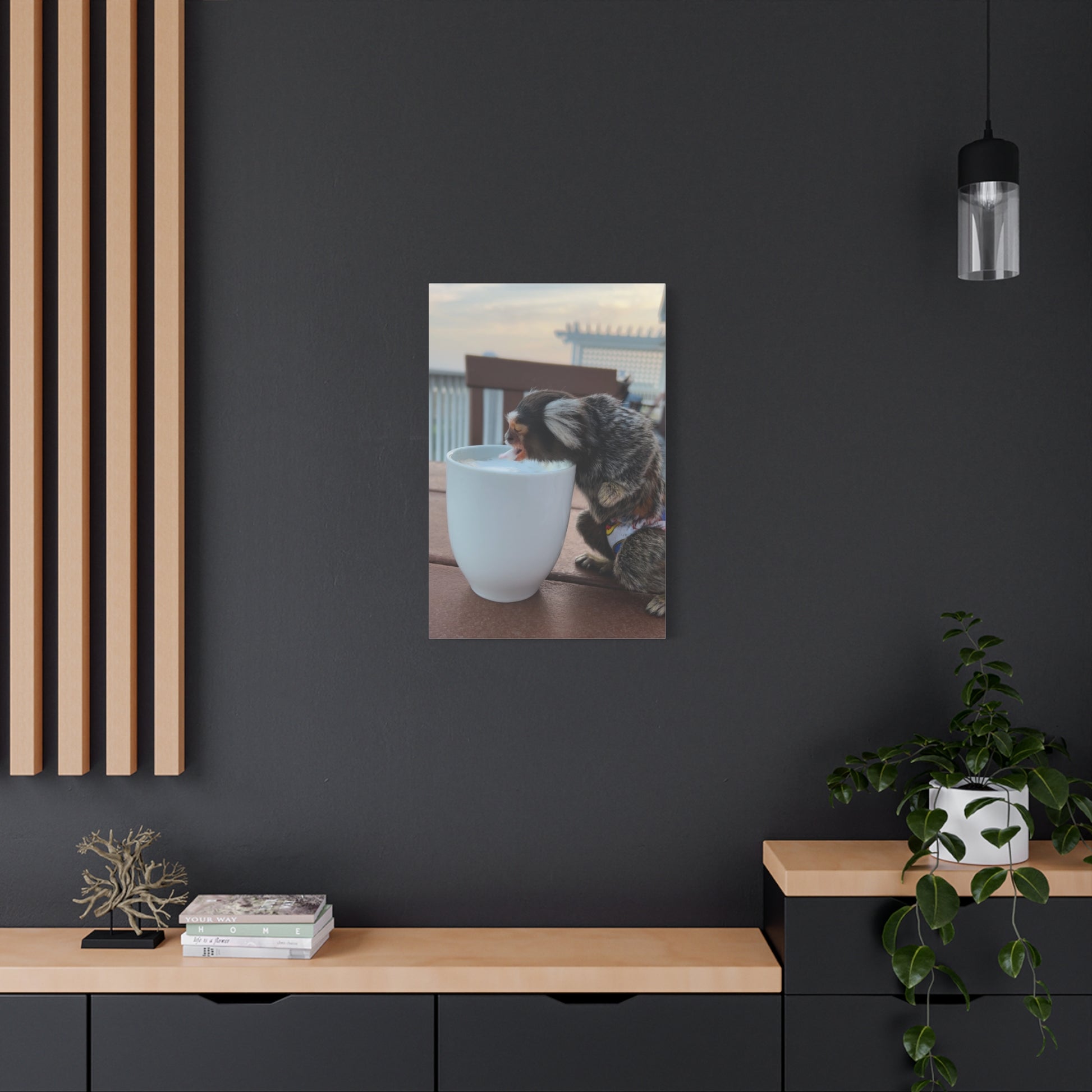 Elevate your wall decor with this stunning matte canvas print, featuring Tiki's morning coffee that brings warmth and joy to any space. The vibrant imagery captivates the eye, making it perfect for brightening up your living room, office, or bedroom. Ideal for animal lovers and those seeking a whimsical touch to their home, this canvas print adds character and a sense of playfulness. It’s an excellent gift for birthdays, holidays, or any special occasion where you want to bring a smile to someone’s face. The high-quality finish ensures it bursts with life, bringing an inviting atmosphere to any setting.